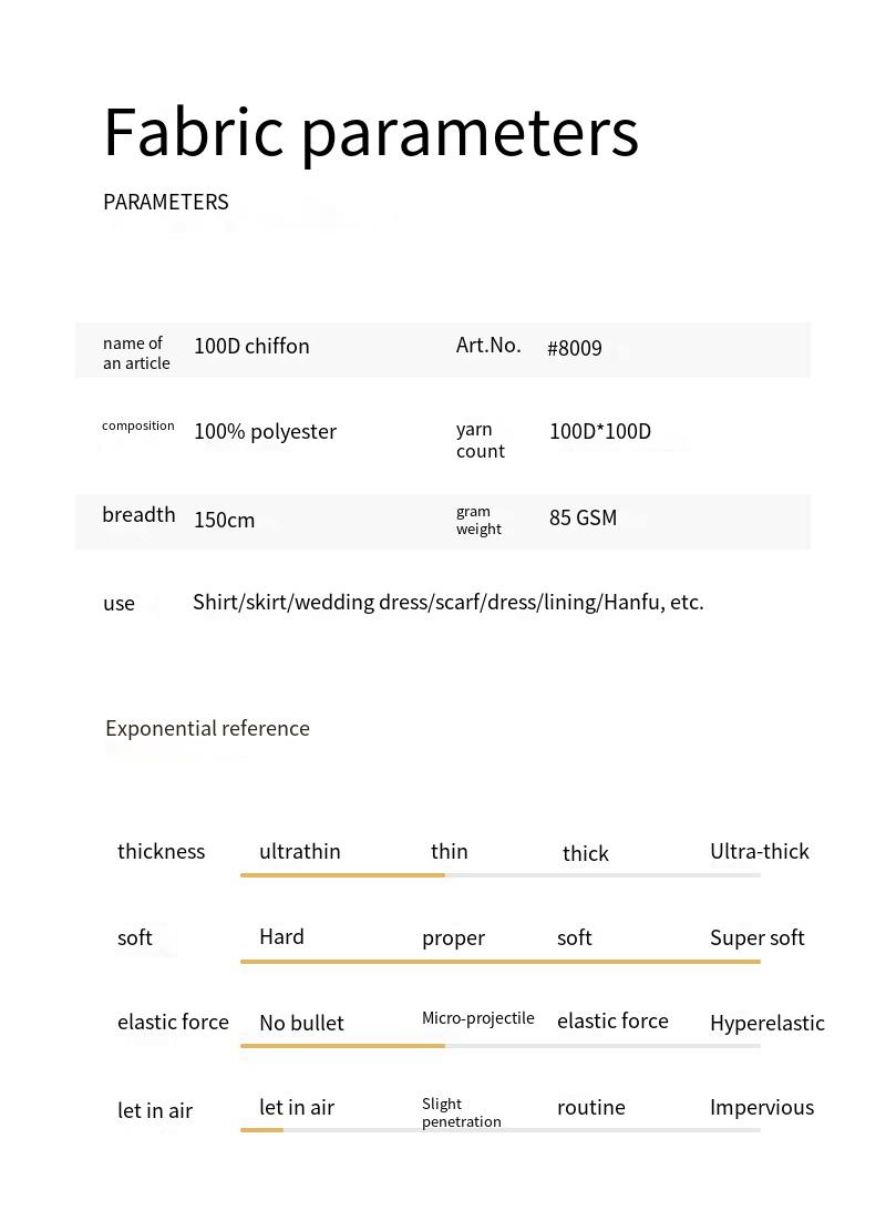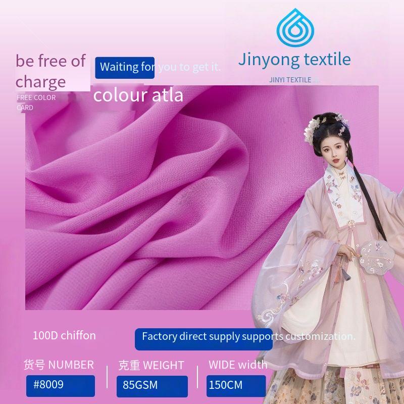100D chiffon 85g plain weave Hanfu fabric for shirts, dresses, wedding gowns, scarves, and formal wear