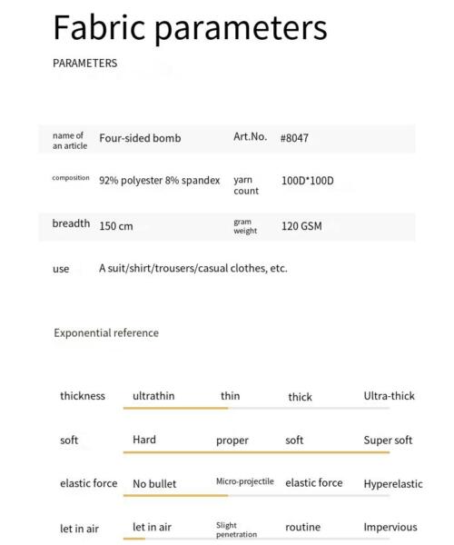 The fabric used in this product excels both visually and tactually. It boasts excellent draping and stiffness, with a natural and smooth drape that lends the garment a sharp and stylish appearance. Additionally, the fabric is highly breathable, ensuring that it doesn't feel stuffy when worn and remains comfortable even in hot environments. Furthermore, the fabric is easy to care for, significantly reducing the time and effort required for daily maintenance. For those who prioritize quality and convenience, it offers a comfortable and hassle-free experience