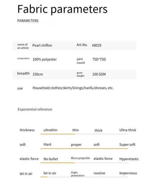 Pearl chiffon 75D chiffon bead fabric, home wear skirt Hanfu lining dress fabric
