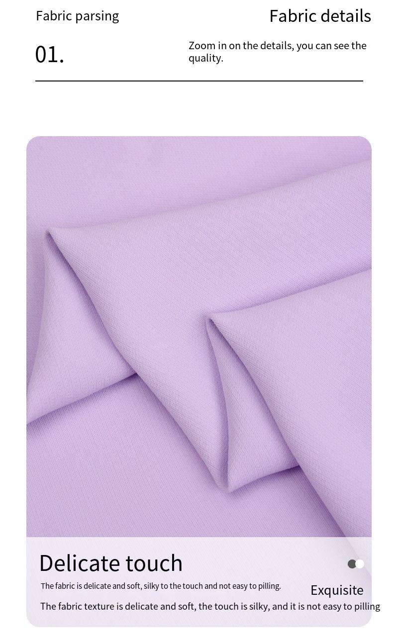 The fabric used in this product excels both visually and tactually. It boasts excellent draping and stiffness, with a natural and smooth drape that lends the garment a sharp and stylish appearance. Additionally, the fabric is highly breathable, ensuring that it doesn’t feel stuffy when worn and remains comfortable even in hot environments. Furthermore, the fabric is easy to care for, significantly reducing the time and effort required for daily maintenance. For those who prioritize quality and convenience, it offers a comfortable and hassle-free experience